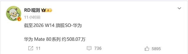 这一波销售热潮与供应链的稳定密不可分。自2026年春节后开始,麒麟9030系列芯片的产能得到了大幅提升,促使华为Mate 80系列的销量迎来了一波小高峰。